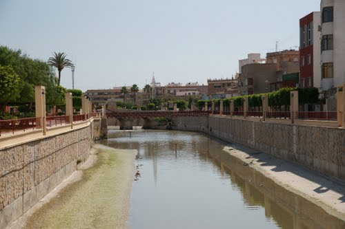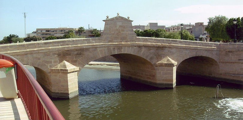 Stromaufwärts vom Wehr durchquert eine feste Brücke mit ihrem zwei schiefebenen Damm den Segura-Fluss durch drei breite Augen. Die ganze Fabrik dieses Denkmals besteht aus perfektem Quadermauerwerk, mit drei Augen unter Gewölben aus reduziertem Bogen oder Karpane, die auf prächtigen Säulen stehen, gekrönt von Pyramidentönen. Es wurde im achtzehnten Jahrhundert gegründet, regierte Carlos III.